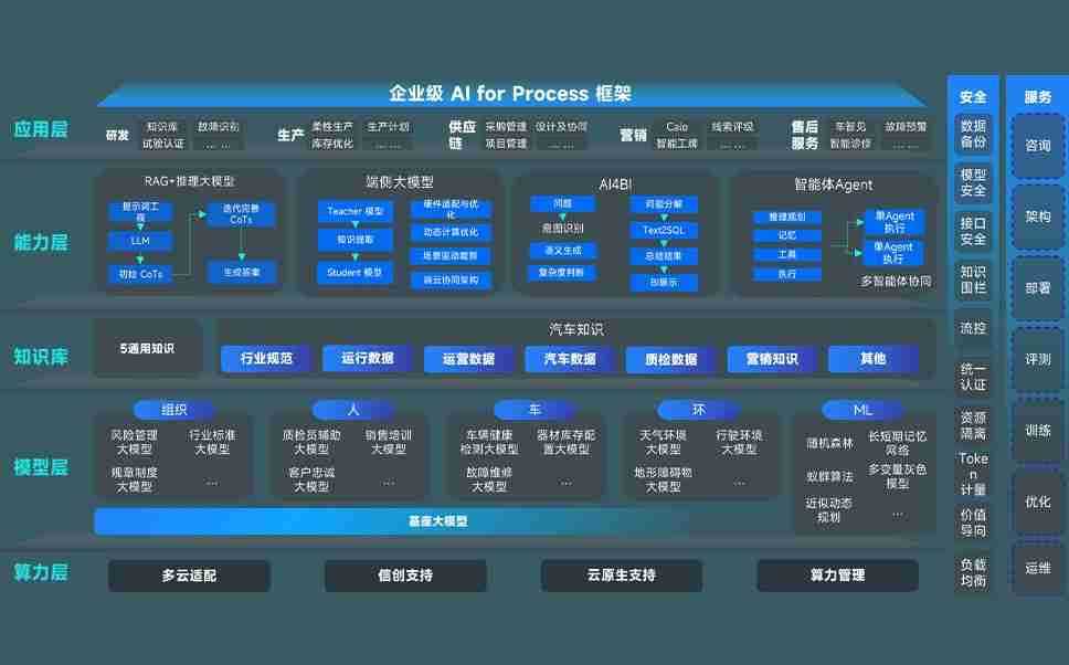 钱能钱包问学智车解决方案是一套基于AI技术的汽车行业智能化系统,,覆盖从底层算力到顶层AI应用的全栈方案。。方案由算力层、、模型层和应用层组成:算力层,,方案支持多种一体机配置,,,,具备云端灵活部署、、多云适配以及动态优化计算资源的能力;模型层,,钱能钱包问学平台版提供了企业级AI应用一站式构建与管理平台,,支持基于后训练强化技术的汽车企业专属模型的训练、、、评测和运营;应用层,,,钱能钱包问学DeepSeek版提供包括超级员工、、、智能招采、、、、智能营销、、、、智能客服、、、、AI for BI等一系列解决方案,,,,可助力汽车行业实现数字化转型,,让管理更智能、、响应更敏捷。。。